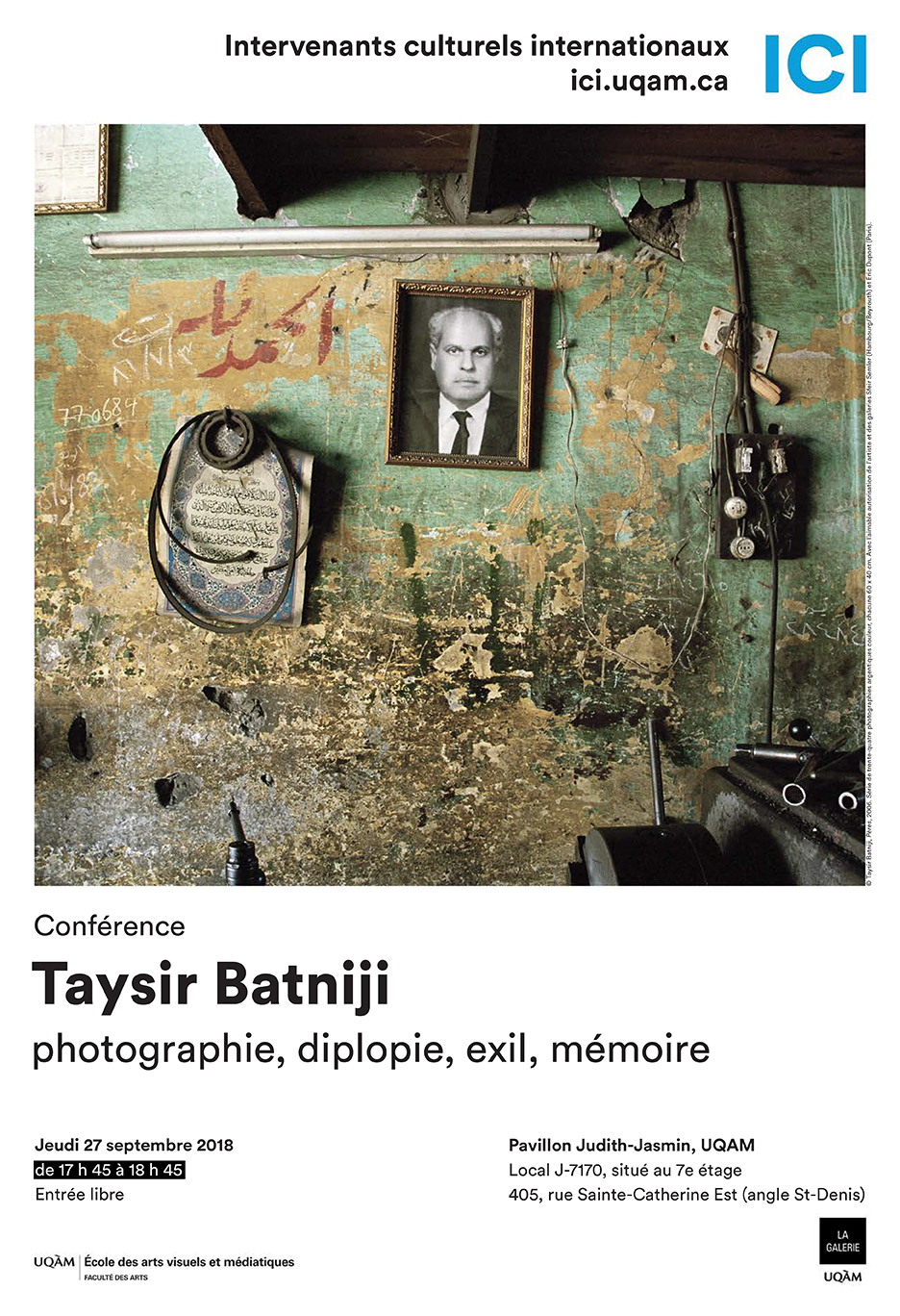 Né en 1966 à Gaza, Palestine, Taysir Batniji a étudié l’art à l’université nationale An-Najah de Naplouse, avant de poursuivre sa formation à l’École nationale des Beaux-Arts de Bourges en 1995. Ses œuvres ont été largement diffusées sur la scène internationale, notamment à la Biennale de Venise, au Martin-Gropius-Bau (Berlin), au Kunsthalle (Vienne), au Witte de With (Rotterdam), au Victoria and Albert Museum (Londres). Cette conférence sera aussi l’occasion de présenter son dernier projet, Home Away From Home, exposé aux Rencontres de la photographie à Arles, en France.